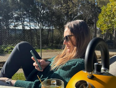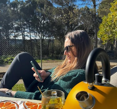 Trabajo desde el campo, rodeada de verde y conexión real.